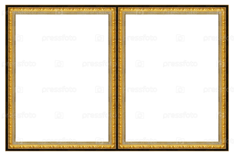 Двойная золотая рама (диптих) для картин, зеркал или фотографий, изолированных на белом фоне