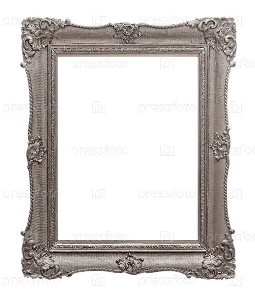 Серебряная рама для картин, зеркал или фотографий, изолированных на белом фоне
