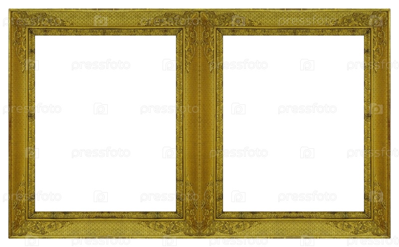 Двойная золотая рама (диптих) для картин, зеркал или фотографий, изолированных на белом фоне
