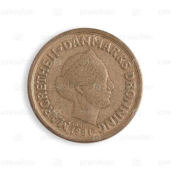 Датская надпись на английском языке означает королеву Дании Маргарет II. 20 крон