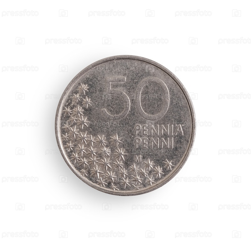 Финская монета в 50 пенсов выделена на белом фоне