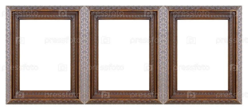 Тройная деревянная рама (триптих) для картин, зеркал или фотографий, изолированных на белом фоне
