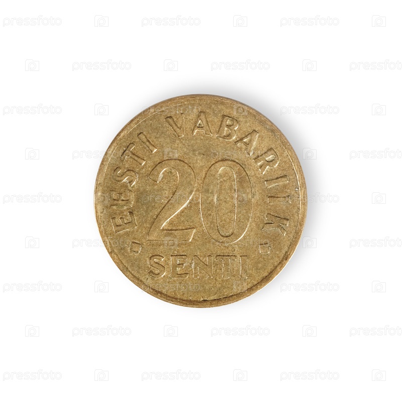 Старая эстонская монета 20 Сади. Надпись Republic of Estonia на английском языке. Элемент дизайна с обрезанной дорожкой