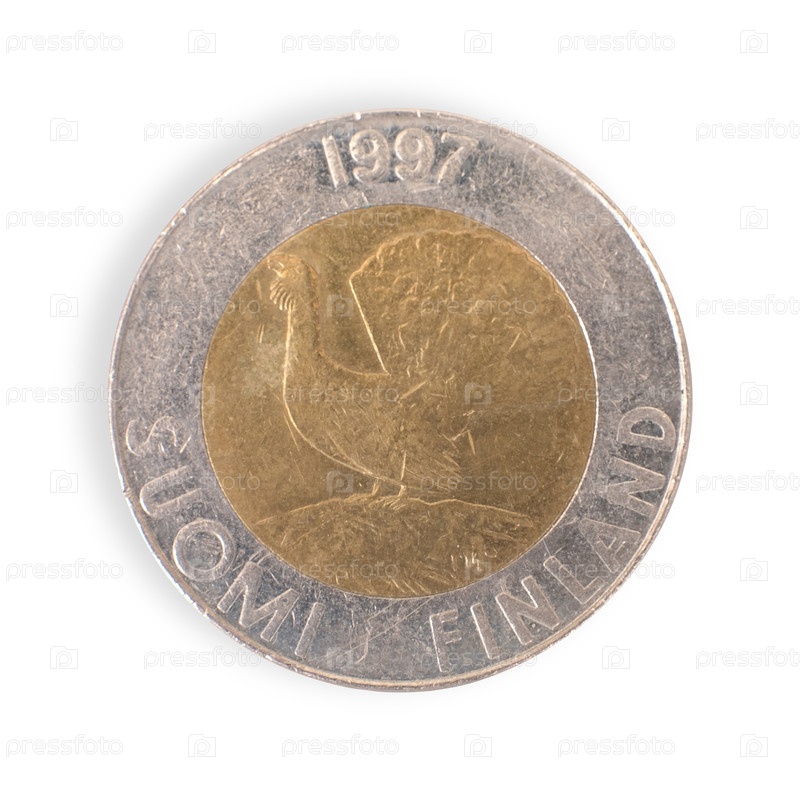 Старая финская монета в десять финских марок выделена на белом фоне