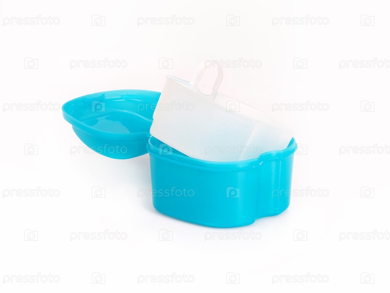 Пластиковый контейнер для гигиенического хранения средств защиты рта или протезов, изолированных на белом фоне