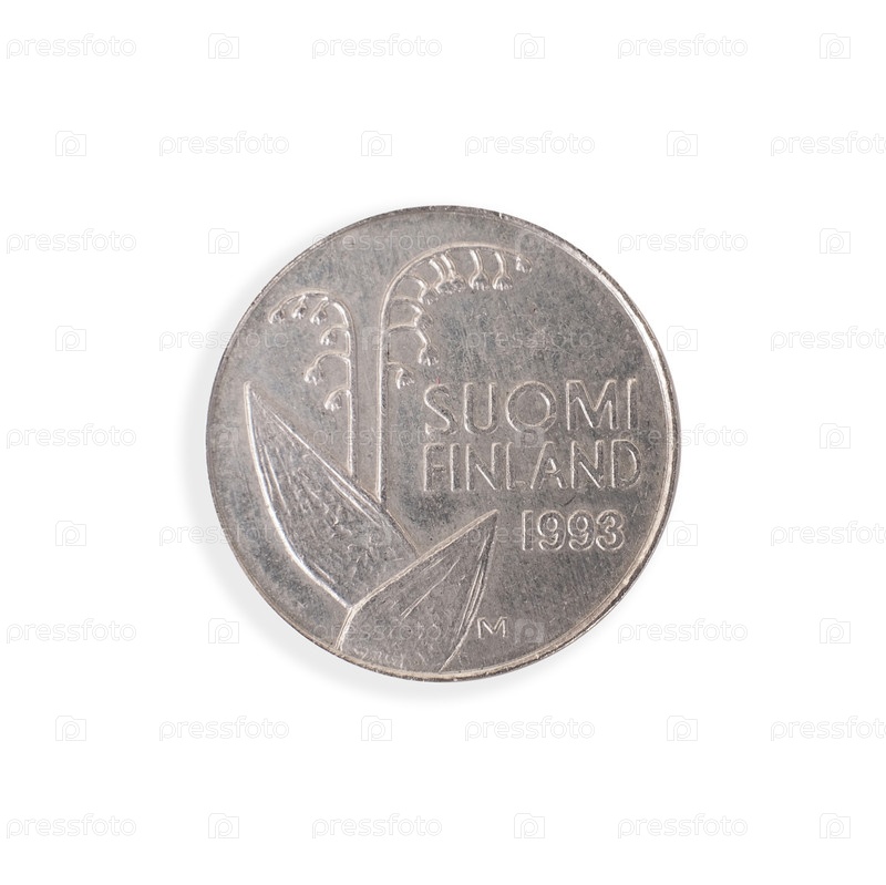 Финская десятипенсовая монета изолирована с обеих сторон на белом фоне