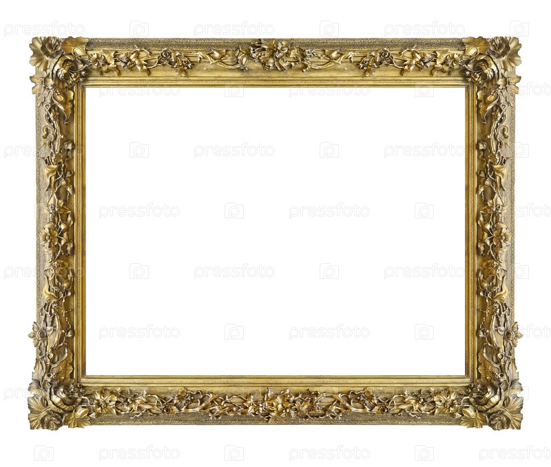 Золотая рама для картин, зеркал или фотографий, изолированных на белом фоне