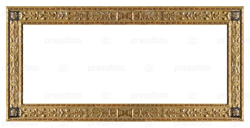 Золотая рама для картин, зеркал или фотографий, изолированных на белом фоне