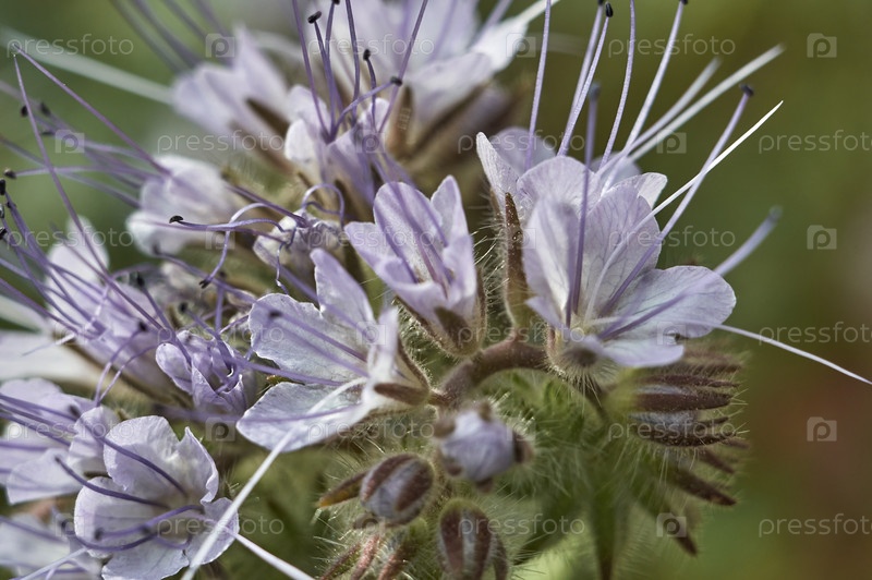 Цветок фацелии крупный план на размытом зеленом фоне