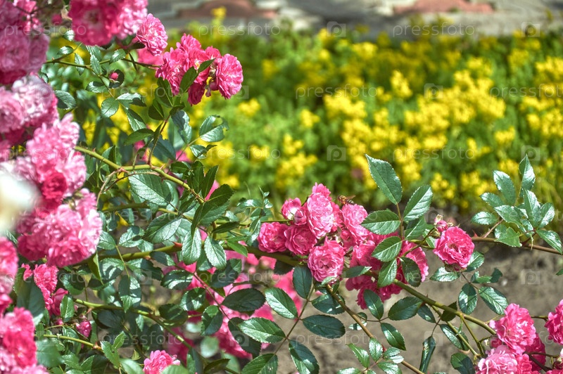 Идея восходящего розового куста с розовыми цветами
