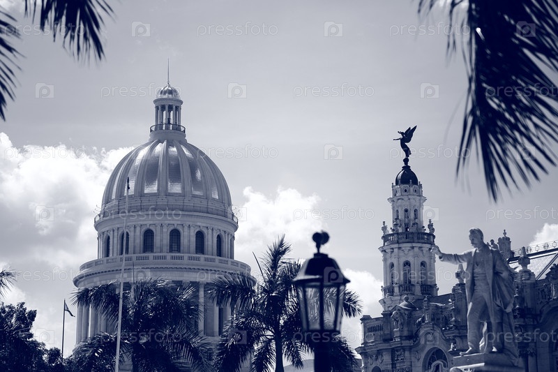 Черно-белая Гавана. Капитолий, Большой театр и памятник Хосе Марти