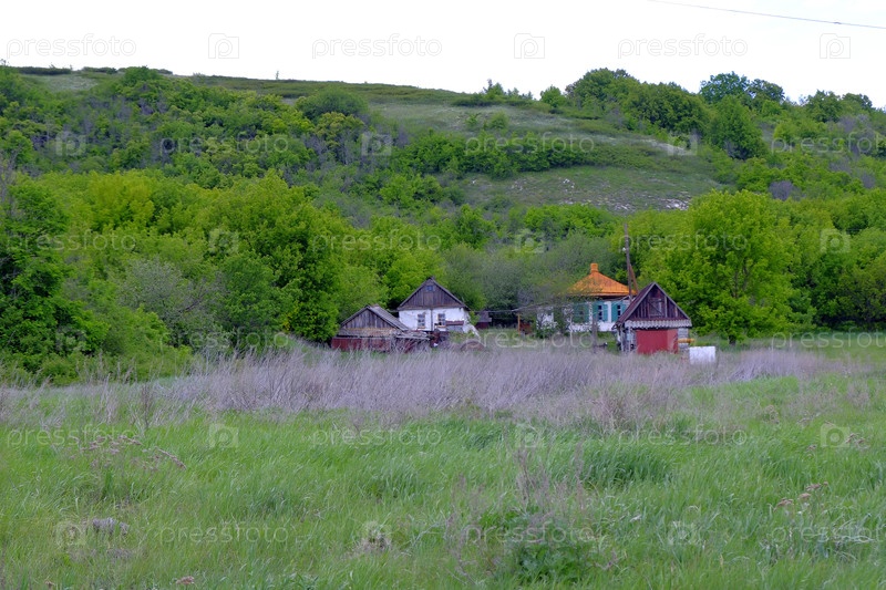 Поселение в трех домах у подножия холма.Россия Воронежская область 17 мая 2025