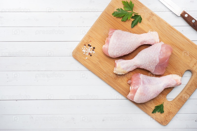 Сухие куриные палочки с петрушкой и специями на деревянной доске для резки