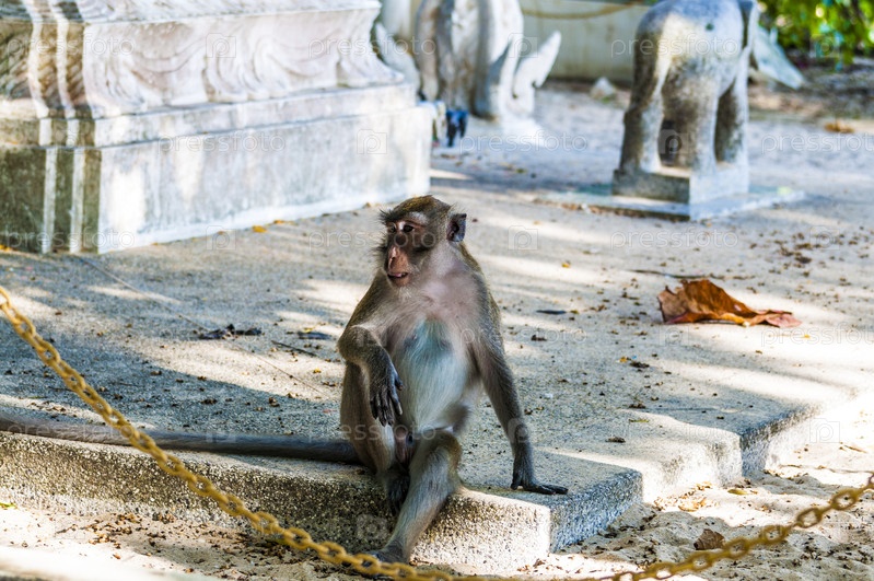Дикие обезьяны играют на пляже Краби, Таиланд