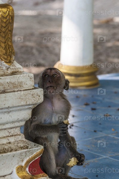 Дикие обезьяны играют на пляже Краби, Таиланд