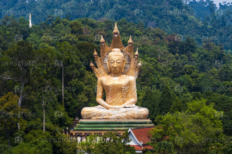 Гигантская статуя золотого Будды на вершине горы в Краби, Таиланд