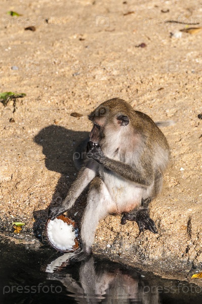 Дикие обезьяны играют на пляже Краби, Таиланд
