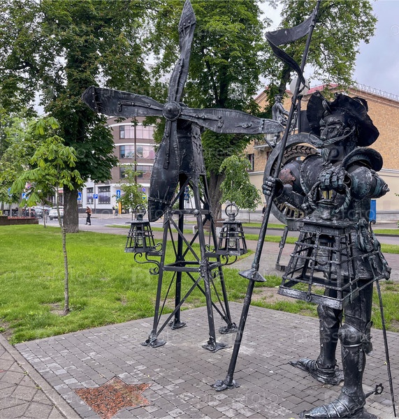 Инсталляция 'Дон Кихот и мельница' на улице Горького в Бресте, Беларусь