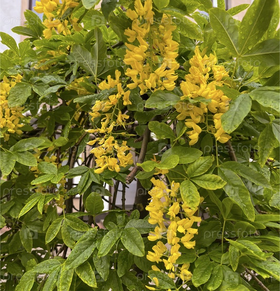 Летом декоративная акация цветет с желтыми цветами