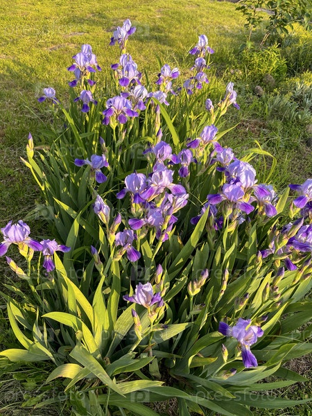 Голубые ирисы цветут в саду летом