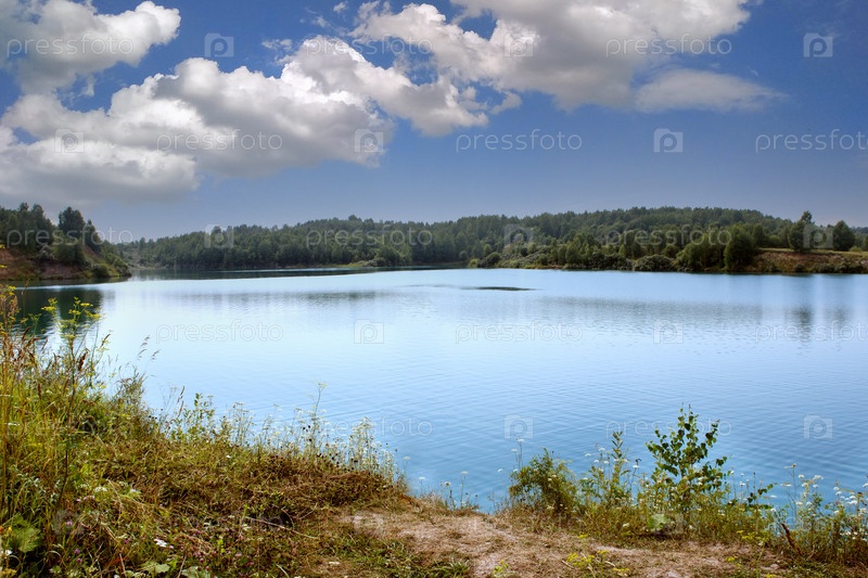 Сельский пейзаж с рекой в солнечный летний день
