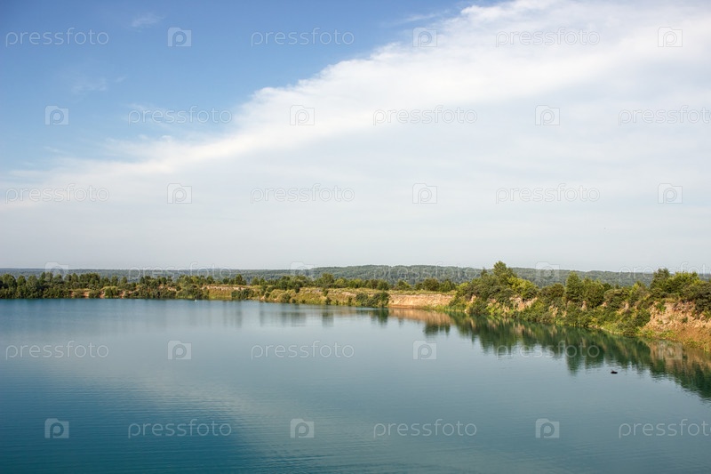 Сельский пейзаж с рекой в солнечный летний день