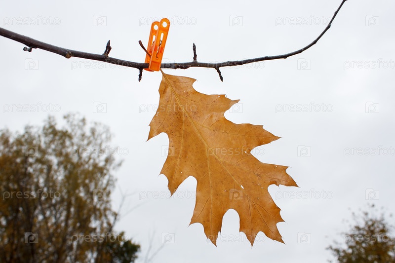 Последний желтый лист прикрепляется к ветке осенью