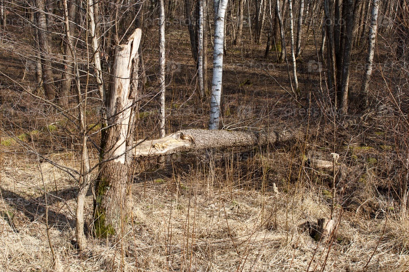Лесной пейзаж ранней весны в солнечный день