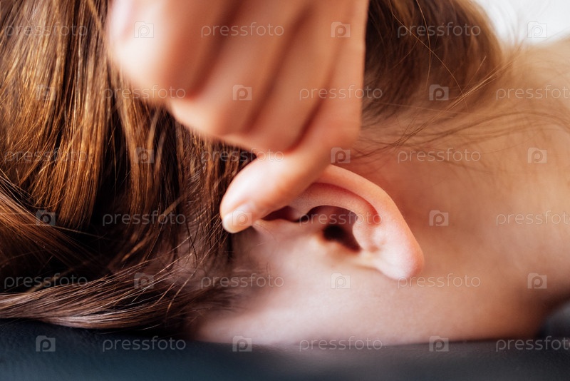 Шкала руки массажиста и часть лица женщины скрыты за масажным столом.Рыжеволосая молодая женщина получает расслабляющую акупрессуру
