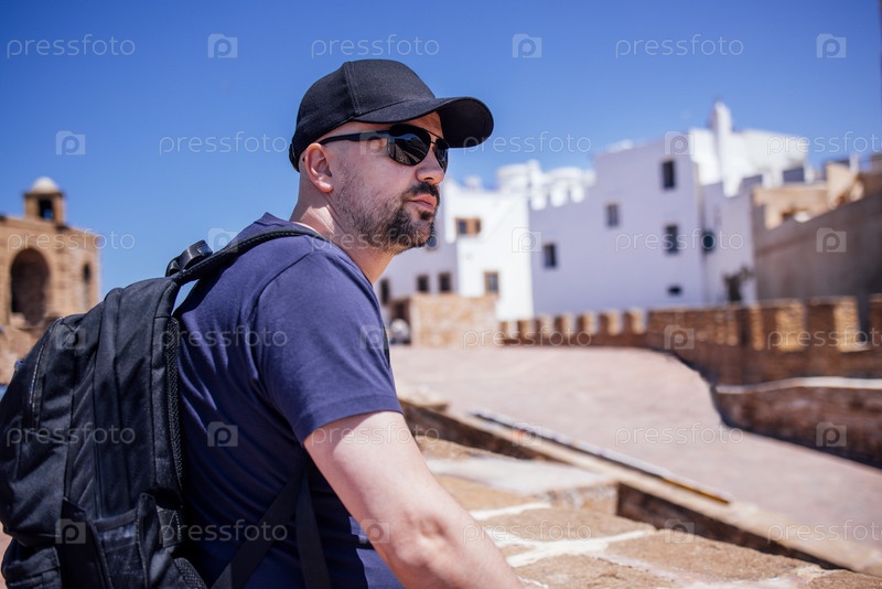 Счастливый турист, посещающий Эссауиру, Марракеш, Марокко