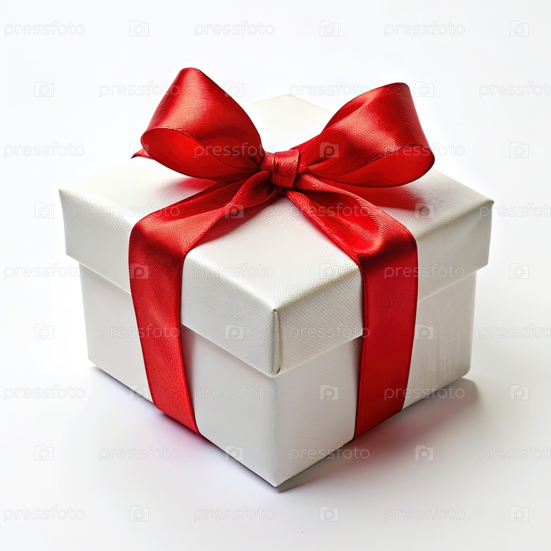 Белый подарочный ящик с красной лентой