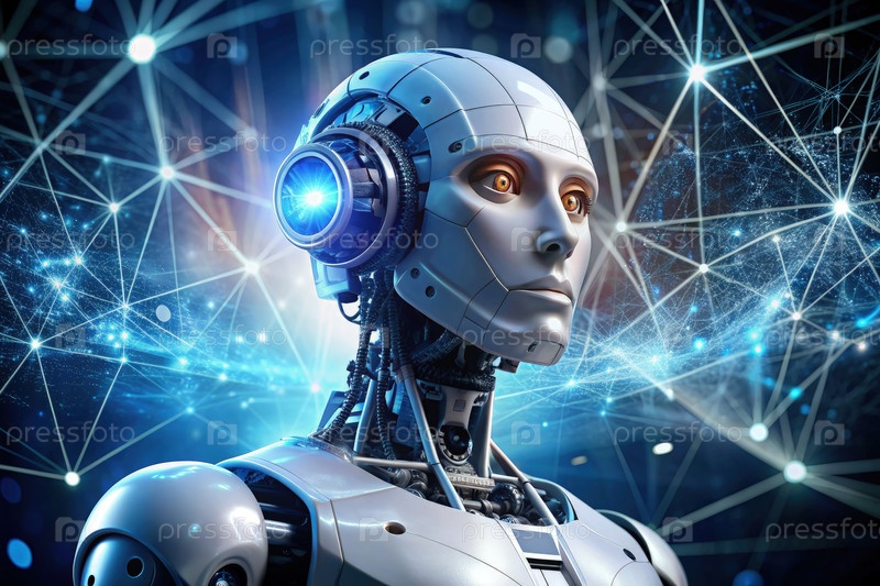 Робот, освещенный фаровыми фонарями, генерирует ИИ