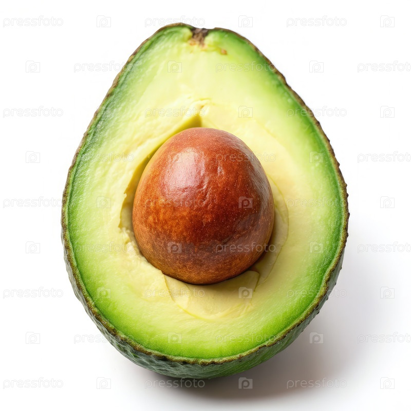 Авокадо, нарезанное пополам на белом фоне