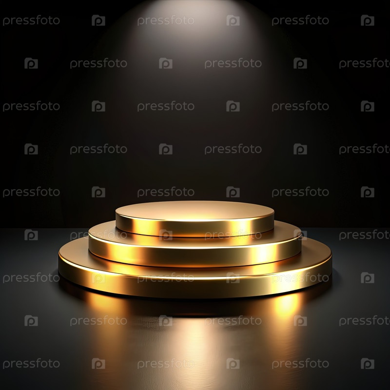 Три золотых подиума на черной поверхности, генерирующие ИИ