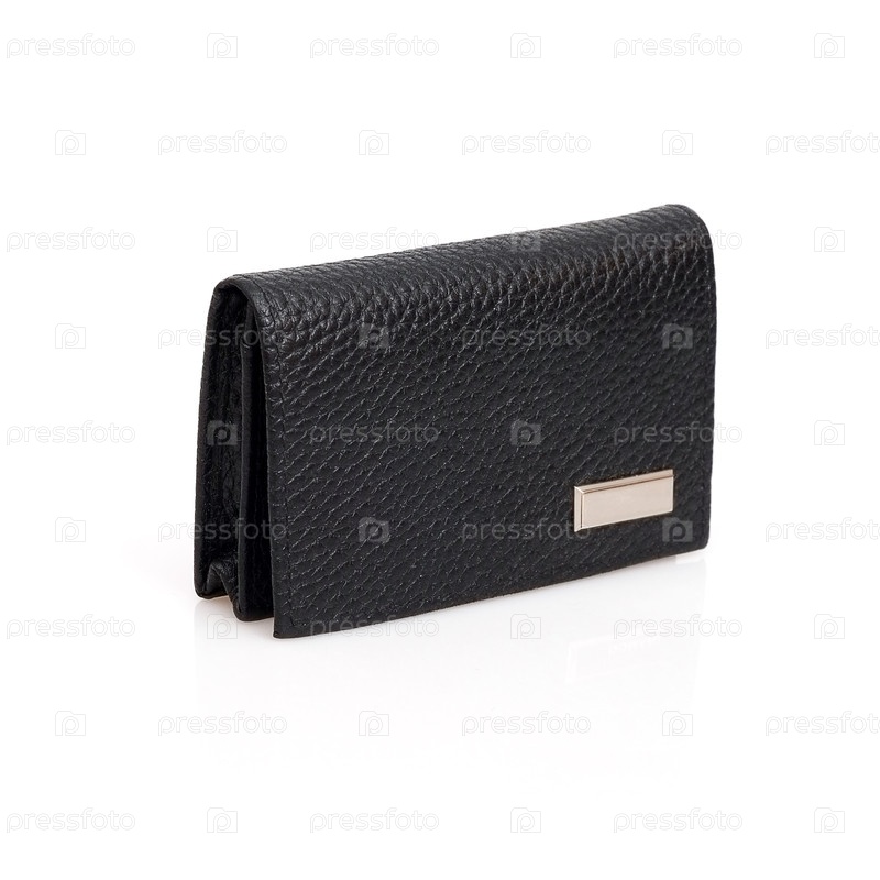 Держатель визитных карточек с черной кожей, изолированный на чёрном фоне