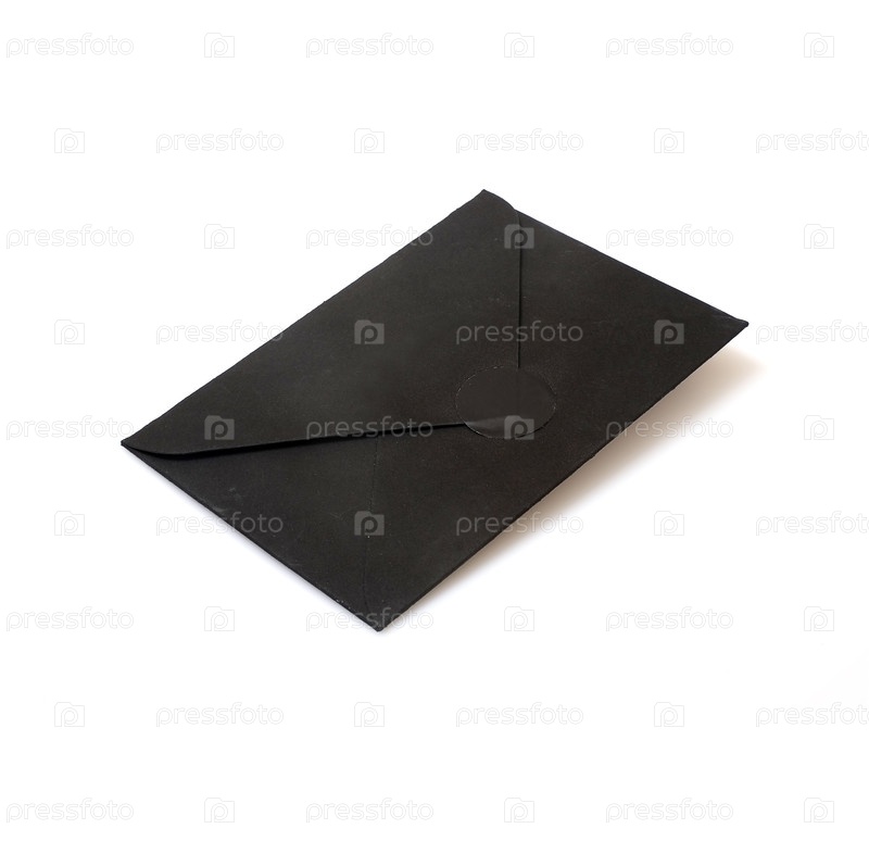 Мокап: Черный конверт на белом фоне