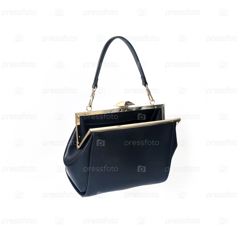 Элегантная маленькая черная сумка (ретикула) с золотым замком, изолированной на белом фоне