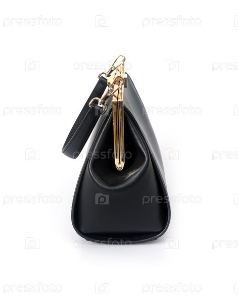Элегантная маленькая черная сумка (ретикула) с золотым замком, изолированной на белом фоне