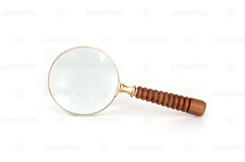 Ретро увеличительное стекло (увеличитель) изолировано на белом фоне
