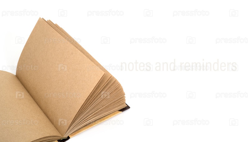 Ноутбук с пустыми листами бумаги, изолированной на белом фоне