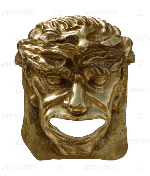 Декоративная золотая голова древнего бога изолирована на белом фоне