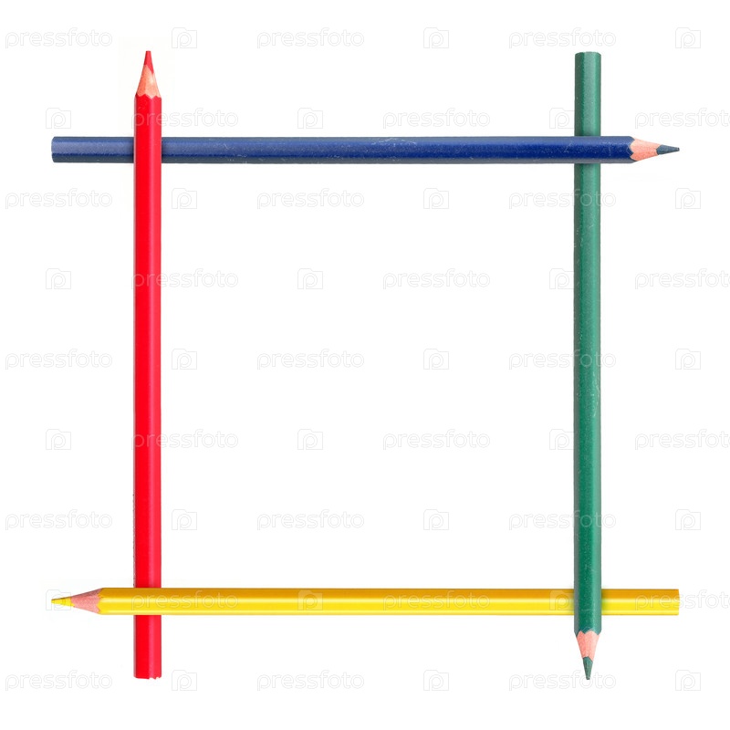 Концептуальная рамка: красные, желтые, синие и зеленые карандаши изолированы на белом фоне