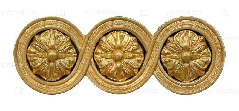 Золотой декоративный элемент с цветочным узором выделен на белом фоне