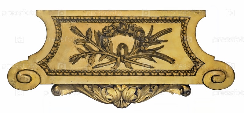 Золотой декоративный элемент с цветочным узором выделен на белом фоне