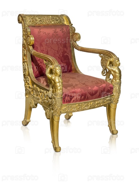 Золотое кресло изолировано на белом фоне