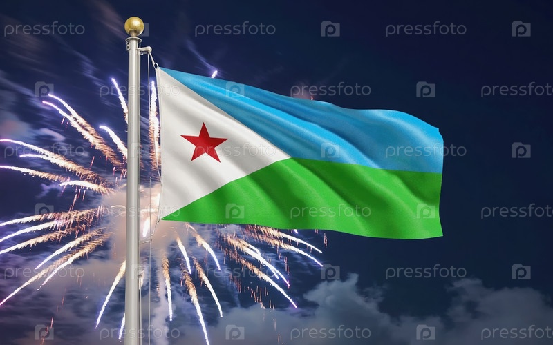 AI генеративная Джибути Государство Независимость Национальный флаг, Фейерверк на заднем плане