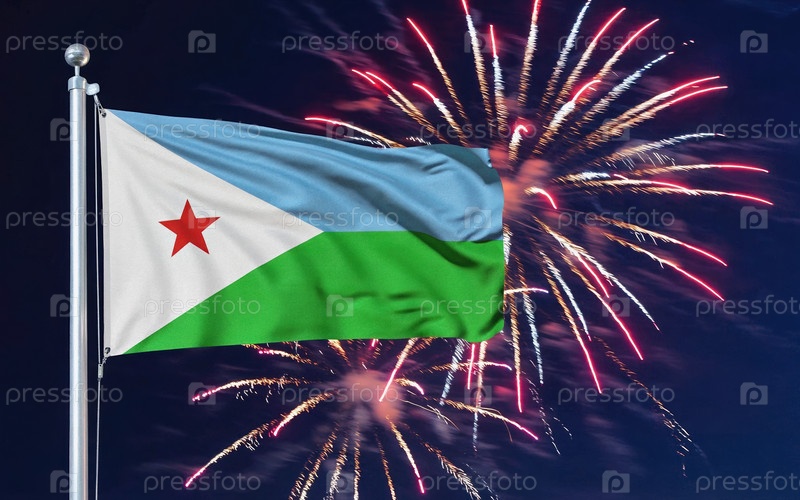 AI генеративная Джибути Государство Независимость Национальный флаг, Фейерверк на заднем плане