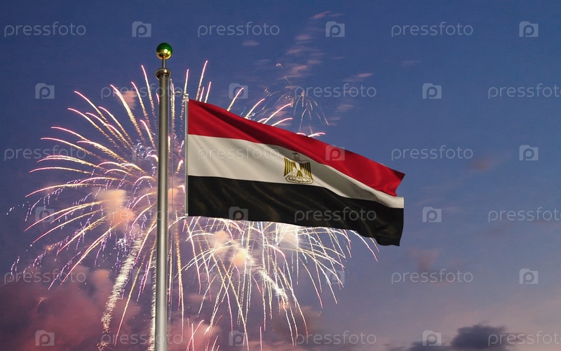 AI generative Национальный флаг независимости Египта, фон с фейерверком