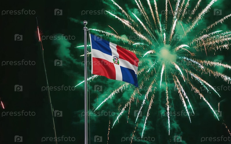 AI генеративный Национальный флаг Независимости Доминиканской Республики, фон с фейерверком