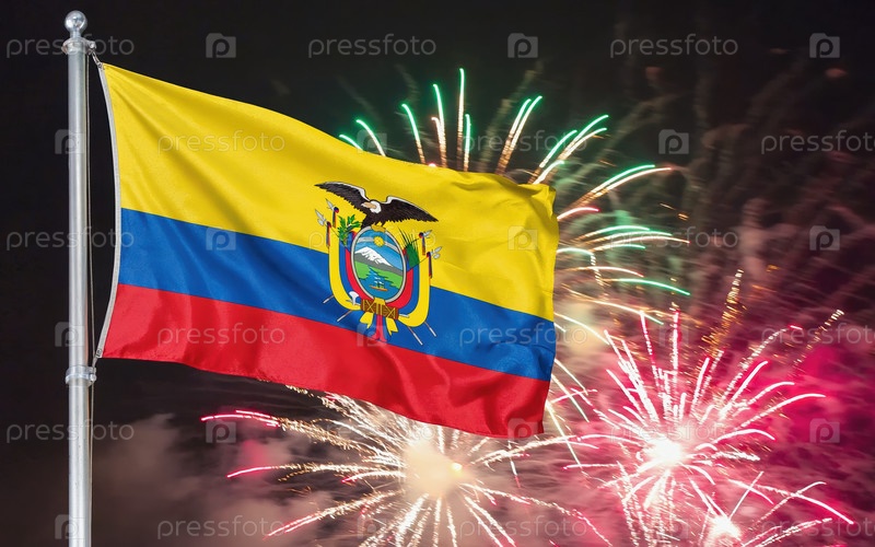 AI генеративный Национальный флаг независимости Эквадора, фон с фейерверком